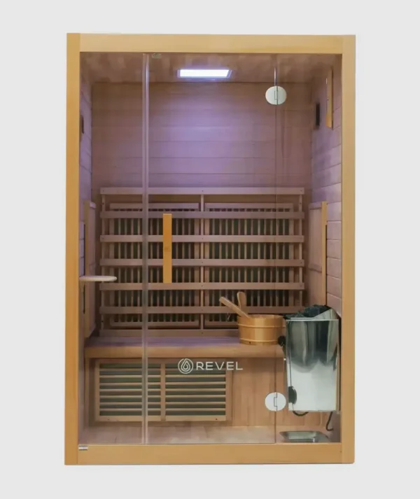 The Revel NordicWave 3–4 Person Infrared Traditional Hybrid Sauna combines infrared and traditional heat systems to deliver a versatile wellness experience suitable for home recovery, relaxation, and improved circulation.