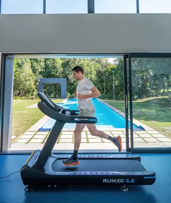 The Vanguard Fitness RunXC 2.8, equipped with the immensely powerful full commercial motor boasting a 6 CHP AC, delivers a seamless and efficient workout experience. Its inherent cushioning ensures low-impact comfort, making it a stylish, comfortable, and resilient commercial treadmill loaded with modern features for all environments.